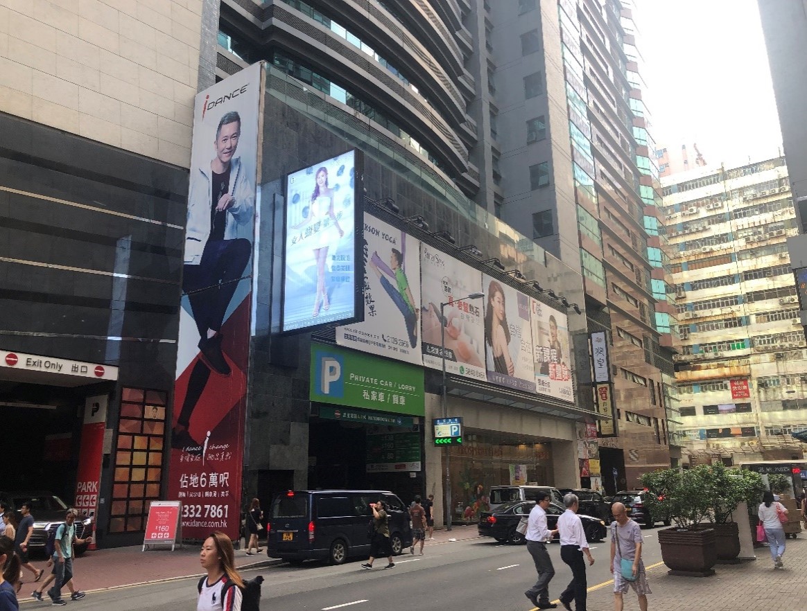 To capture the marketing exposure in core Kwon Tong busy street traffic and foster a stronger retail image, a projected outdoor lightbox has been installed on the lower portion of building façade.